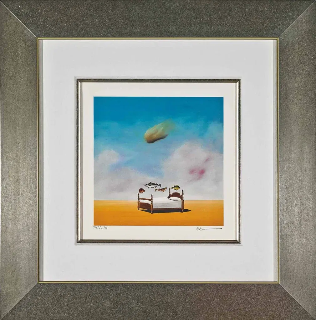 Robert Deyber Sleeping With The Fishes Framed hand-crafted stone lithograph
