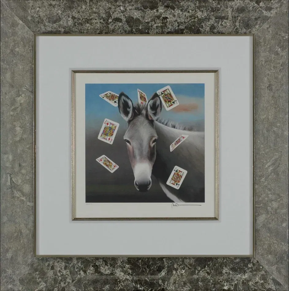 Robert Deyber The Jack Ass Playing Cards Framed hand-crafted stone lithograph