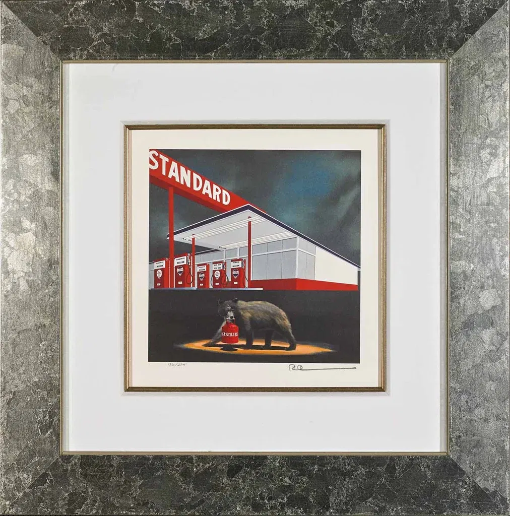 Robert Deyber The Standard Bear Framed hand-crafted stone lithograph