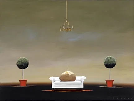 Robert Deyber s artwork is full of surprises. Every canvas revels in the artist s sense of humor, each painting a visual rendering of a clever turn on a common phrase. Despite his sense of fun, however, Robert Deyber is a seriously skilled painter. He is endlessly intrigued by visual imaginings that reside in the realm between reality and fantasy, and he is clearly able to render these imaginings brilliantly. His artwork is highly narrative in nature; his paintings convey an almost dreamlike quality to the bemused viewer. Born and raised in Greenwich, Connecticut, Deyber began drawing at an early age. Art was a necessary means of escape from an otherwise difficult world, one in which he set his mind free to visit the most remote places-a wheat field in South Dakota, the dunes of the Gobi desert, the moons of Jupiter-all within easy reach for a very imaginative young boy. Throughout his paintings, Robert Deyber moves in and out of visual themes and story lines. Compelled to create imagery where he uses a combination of highly stylized composition, light and contrasting colors, his goal is to apply all three skillfully, thereby drawing the viewer into his painting without overpowering or confusing. Deyber is a visual raconteur - a storyteller with a paintbrush, his mind s eye planted deep within the subconscious. With artistic roots that hail from the Surrealist movement, among his heroes are Rene Magritte and Salvatore Dali. While many of Deyber's paintings contain elements derived from dreams created out of the unpredictable imagery found in the subconscious, the extraterrestrial flowers have more in common with the worlds of alternate natural history imagined by Alexis Rockman or Walton Ford, and the visual rendition of current phraseology and popular culture are more in the tradition of the Pop Art movement. It is, in the end, the undecided tone between sincerity and irony that makes Robert Deyber's artwork distinctly contemporary, his visual vocabulary distinctly his own, but with a worldwide audience.