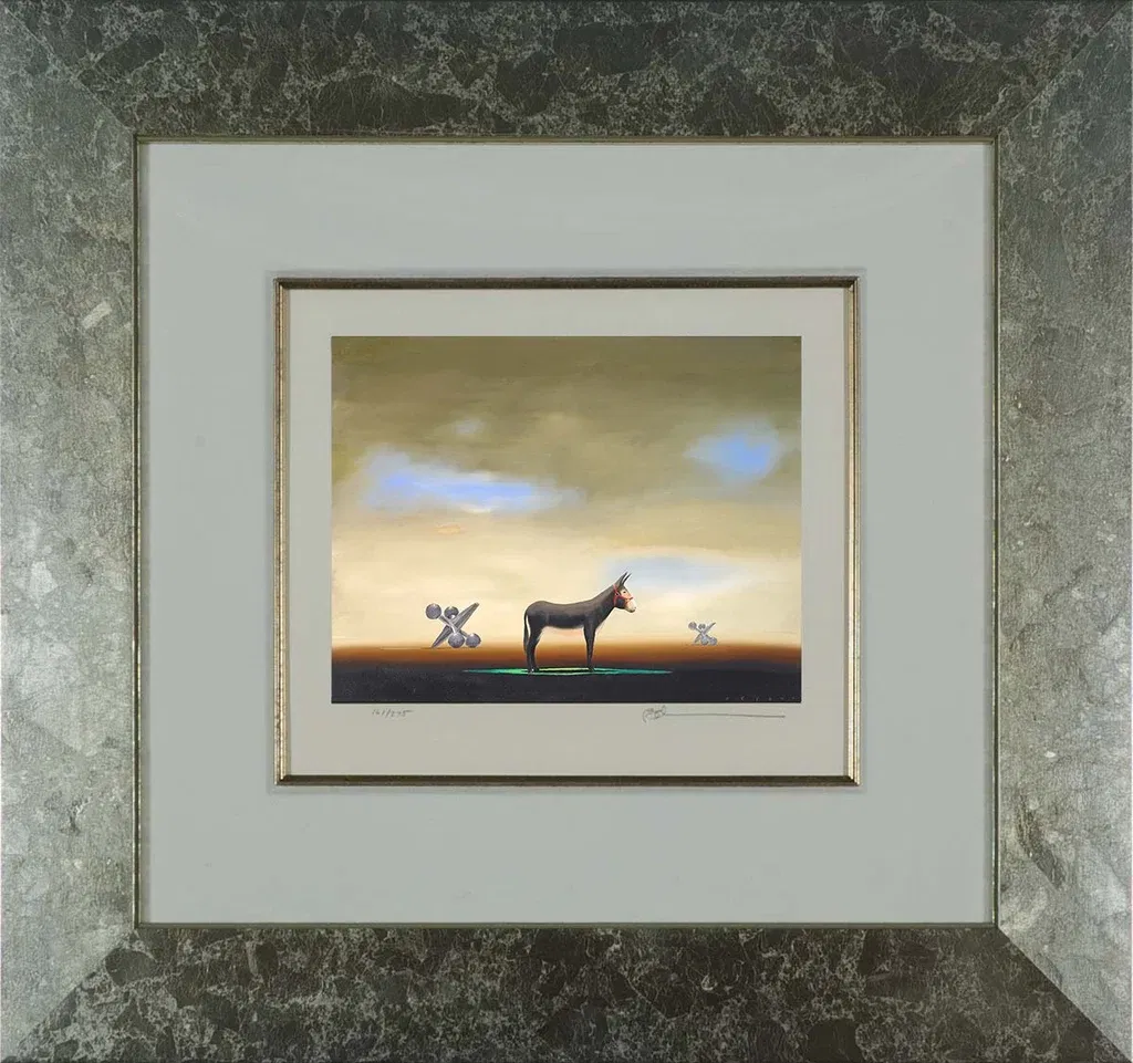 Robert Deyber The Jack Ass Jacks Game Framed hand-crafted stone lithograph