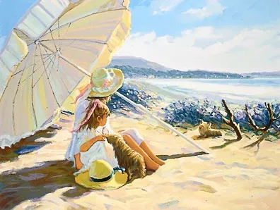 "I try to create a feeling of idealism in my art, a sense of romance and playfulness. My intention is to capture the peacefulness of a moment through the use of light and color. Ultimately, the use of light is what motivates me as an artist." — Robert Williams Robert Williams is a modern day Impressionist. Raised on the island of Catalina, his early carefree days near the shore have left an indelible imprint on his art style. Long recognized for his sun-drenched beach scenes of women and children at play on the sand and in the surf, his paintings express a timelessness, sensuality and great tranquility. His colors blend and flow like a pastel swirl of abalone shell under green sea foam. Inspired by the works of Monet and Sargent, and heavily influenced by the American impressionist William Merritt Chase, Robert Williams furthered a paintin style known as California Impressionism. His radiant use of light, subject, and powerful coloring techniques demonstrate unparalleled talent and sensitivity. After studying at the renowned Chouinard Art Institute, Williams was sought by major Hollywood movie studios, including MGM and Universal, to design scenic art. In 1980, he was signed by Walt Disney Studios where he designed innovative murals and scenery. For more than thirty years, his art work has been his life's passion and his work shows in innumerable national and private collections. Over the past two decades, the art of Robert Williams has been presented at more than 200 exhibitions.