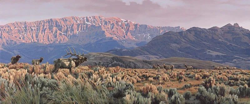 "The serene outdoors seem at odds with the wild and crazy character of this artist, who is as famous for his paintings as he is for his sense of humor and gaudy shirts! If seen on his constant excursions into the wilds, many a collector would tell of an eccentric pirate come to life, only this swashbuckling, seemingly fearless explorer was more anxious to gain and share the treasure of knowledge rather than riches. ""I grew up in a house full of pets,"" he says. ""My mom had a degree in fine arts and although my dad was a lawyer, he was a weekend painter."" So his love of animals and art was sown early (also inspired when he received a gift of Roger Tory Peterson s Field Guide to the Birds) and he attended Willamette University with a major in art and a minor in biology. ""So I could know my subjects outside and in,"" he says. He put that education to good use as he embarked on a fine art career that would allow him to do what he enjoyed most; explore and learn. Frederick built his house in the middle of the Oregon wilderness and filled it with birds and animals. He s hiked and camped in mountains and forests throughout the northwest U.S., Central America and East Africa. He knows the lakes and mountains as well as he knows the plains and deserts, not to mention almost all the creatures who live there, from the smallest bird to the largest elephant. And he will paint them on whatever size canvas suits them best. In addition to his peaceful views of animals in their natural habitats, he is also known for his paintings many different sizes and shapes—each chosen to best suit his perfectly balanced images of wildlife and wilderness. "