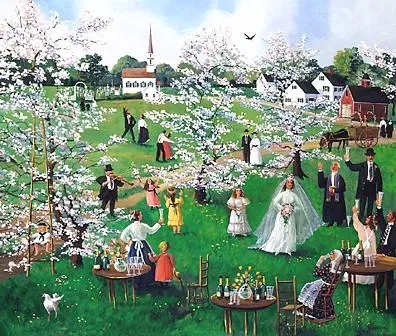 I was born in 1951, in Philadelphia. My sisters and brothers and I grew up in Birmingham , Michigan. Our mother was a gifted watercolorist who never had the time to pursue her own creative passion. She transferred those desires to my sister and me, who took them up almost dutifully. Our mother provided us with good materials, for which I will always thank her, as some of the real magic of painting is released through the alchemy of paint and surface. Over the years, my style has evolved consistently, as I have evolved. Change and openness are essential to the creative spirit. I can never adequately describe my art , as it defies easy categorization. Much of it has reflected coastal New England life with an emphasis on the marine. My children were brought up in a Maine fishing village out of which my husband ran a boat fishing for lobster, bluefin tuna, urchins, and other exotic and magical creatures of the deep. All the time spent on the water has deeply affected my work. My experiences in the world of art publication led me to branch out and explore the world of the narrative as inspired by old photographs. This offers a rich and limitless vein of possibility. I never tire of probing into the past for inspiration. I also started to create art for events, such as the America s Cup races, the Wooden Boat Shows, various parades and festivals, even the Monte Carlo Circus. My love for the artless self-composition of interacting figures and human body language have always led a light-hearted humor to the paintings, which have sometimes been called "naïve." The word "naïve" has always troubled me because I do not feel naïve. I often feel pretty cynical and let down. But I do feel a genuine affection for the people I invite into the paintings, people who are simply part of the composition, going about their business unawares, as if in snapshots. Now, in midlife, I have experienced quite a bit of loss and change. So much so that it would be disingenuous not to change in my art .. I am returning more to landscape out of love for the beauty of the world around me. The human presence is, of course, always implied at the very least. I desire to be a strong unseen presence, involved in the scene before me. Still, never far from the whimsical, I love to paint animals and objects and people. I am more interested in being eclectic than in being easily categorized. I am no classical artist. I am a painter whose work is her greatest source of well-being.