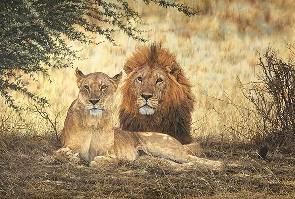 "In 1940, Simon Combes was born in "Wilderness Cottage€¬," in Shaftsbury, England, and from that day in June, the wilderness always attracted him. His first adventures began early when, in 1946, his parents immigrated to farm in Kenya s Great Rift Valley, a magical place for a young boy. Simon loathed his years at boarding school in Nakuru and at Duke of York in Nairobi, always longing for the freedom of the bush. While managing a 2,000 acre farm when he was seventeen, he was drafted into six months compulsory military training after already applying for appointment in the Kings African Rifles. He was accepted into 4 KAR but having just finished his training was sent to Uganda where one of his duties was to teach basic etiquette and rugby to a young Idi Amin. He attended Sandhurst Military Academy and returned to Kenya to join the 3rd Kings African Rifles in time for Kenya s Independence. In 1964, Simon was chosen to form and command Kenya s elite Parachute Regiment. This involved training the first 250 paratroopers in England, and translating all the instruction books into Swahili. Their first posting back in Kenya was fighting the Shifta war in the North Eastern province. It was during this time Simon started to draw and paint as a hobby to occupy his spare time. His subjects were the Somali and Boran people and the landscapes of the North. In 1969, he held his first exhibition in Nairobi which was a sell-out on the opening night. It was then that the idea of painting full-time started. However, he was refused release from the army and was moved to army HQ as staff officer in charge of all operations and training. He was also captain of the army shooting team and vice chairman to the Kenya Rifle Association. A Major at 28 and performing the duties of a Lieutenant Colonel, his military peers remember him fondly as a "True Kenyan." Finally, in 1974, he was released from the army and started life as a professional artist. Best known for his stunning images wildlife in the African bush, he achieved worldwide success and acclamation through many prestigious awards. His paintings hang in private and museum collections around the globe. Simon s life was rich with great adventures and wildlife encounters. From being lost in a blizzard while crossing the Altai Mountains in Mongolia and flying into the jungles of Venezuela to sketching Bengal Tigers atop a howdah on a swaying elephant in India, his experiences and observations led him to develop his exacting artistic style, rendering his subjects with such depth and exquisite detail. Africa & Beyond: The Art and Adventures of Simon Combes, a retrospective exhibition of Simon s major works, was held at The Wildlife Experience Museum in 2004 to celebrate his great artistic achievements. Since 1979, The Greenwich Workshop, Inc., has published his works as Fine Art Reproductions on paper and canvas. He always said, if given the time he would rather write than paint. This talent is apparent in his books An African Experience, distributed by The Greenwich Workshop and Great Cats, published by The Greenwich Workshop, Inc. Simon was also working on a book of Limericks about life in Kenya which reveals his ability to entertain us with his wit and humor. Simon had a wonderful talent for communication, whether in speech, writing or painting. Never self assuming, he gave talks in Kiswahili to the farm staff, through a translator to school children in Russia and also to many interested groups around the world. Not only a man of the arts, but an avid conservationist as well, Simon had recently appointed Kenya Representative and Project Director for Rhino Rescue Trust. He sat on the boards of several wildlife conservation organizations and raised, through his art, many thousands of dollars for their causes. On Sunday, December 12, 2004, atop a beautiful ancient volcano near his home in Africa s Great Rift Valley, Simon s life was tragically taken by one of the wild animals he so lovingly portrayed in his paintings. He never "gathered moss" and now he has come home. He is survived by his wife Kat, his children, Cindy and Guy, his sister, Jenny all of Kenya and his former wife Susie of England. We shall remember Simon well.