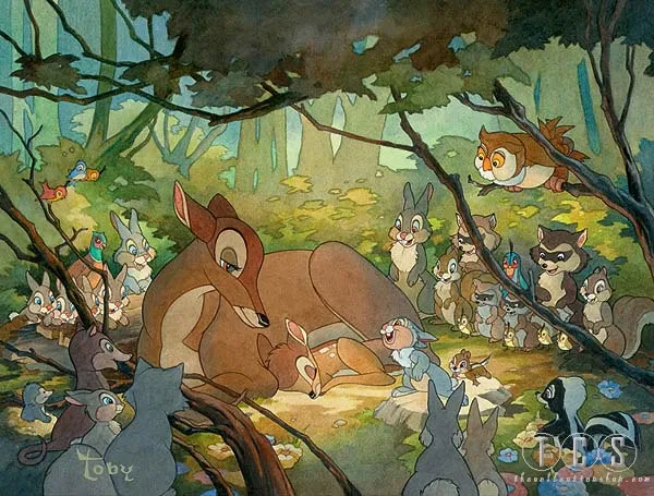 Toby Bluth Bambi And Mother Framed Giclee On Paper