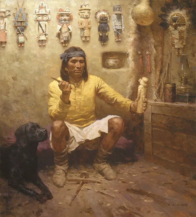 Z.S. Liang Kachina Carver Giclee On Canvas