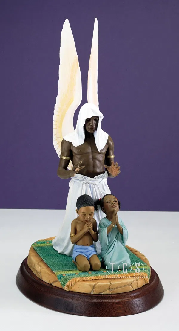 "I always knew I wanted to create Ebony Visions'. As an artist who happens to be black, I had distinct ideas about what I would like to see in the line." The elegant compeling figurines he created for the collection are a blen of both Art Nouveau and African culture, which Thomas calls "Afro-Nouveau." - Thomas Blackshear .Thomas Blackshear introduced Ebony Visions in April 1995 with the release of the first six Ebony Visions designs, The Storyteller, The Protector, The Nurturer, Siblings, Madonna and Tender Touch. Since then, Thomas Blackshear has created many new designs to add to the Ebony Visions collection. Thomas Blackshear's Ebony Visions collection is a master work of romantic symbolism. As with his paintings, these sculptures demonstrate Thomas Blackshear's incredible sense of design, unique eclectic style, and extraordinary mastery of color. Elegant drapery and delicate detail tantalize the eye while revealing each sculpted form. Thomas Blackshear's Ebony Visions depicts a full range of emotions that are both powerful and at the same time subtle. He deliberately portrays his Ebony Visions figures in a timeless setting in order to transcend a specific time, place, or culture. This unique collection of limited edition figurines emphasizes the beauty of the human form and symbolizes universal aspirations and ideals of humankind depicted through images that reflect the unique characteristics of the African American culture. For centuries classical beauty has been portrayed predominantly by white artisans who represent white subjects in their art. In this romantic and subtle tour de force, Thomas Blackshear creates a new vision of beauty and human emotion, an Ebony Vision.