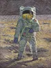 Bean conceived this set, First Men, to remedy that. He chose the moment on July 20, 1969 when Armstrong took Aldrin's picture as the setting. Aficionados have long recognized that Neil can actually be seen as a reflection in Buzz's helmet. A series of calculations from that enabled Bean to replicate Armstrong's positioning exactly when he created First Men: Neil A. Armstrong.
