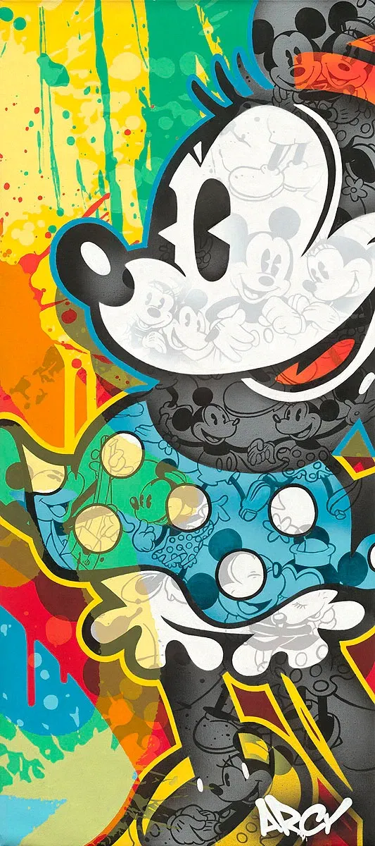 Known for his paint splashed style of large scale street art, ARCY has been defining his skills for over a decade. In 2015, ARCY announced his inaugural North American live event mural tour, where he took his skills on the road, spray painting 8′ x 12′ live event walls in front of thousands of onlookers in many of the largest cities across the nation. Since then, ARCY has created hundreds of live murals and permanent large scale works throughout North America, Australia, and Europe. ARCY has worked for the likes of The Smithsonian Institute, Major League Baseball, America’s National Parks Service, and is currently developing a collaborative body of work for The Walt Disney Company as a Disney Fine Artist. As he travels the globe, ARCY continues to demonstrate his growing desire to leave his mark wherever he goes, giving back to humanity through public art.