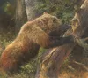 Bonnie Marris has taken an unusual path into art; she developed her talent by portraying animals "from the inside out." While she was a student at Michigan State University, Bonnie illustrated several major books. One volume she worked on was a leading expert s mammalogy text that contained several hundred drawings and detail studies. This massive project attracted the attention of noted zoologist George Schaller, who invited Bonnie to prepare the art for posters that would support his worldwide rare animal relief programs. Beyond academic training and emotional involvement, art requires another element for which there is no substitute: experience. Each year, Bonnie makes two major trips, and countless smaller ones, to observe and learn about the wildlife she loves. In 1980, one such voyage took her to Alaska, where she lived in the wilderness for six months. She recounts, "To get into a natural environment and see the animals on their own terms is as important as knowing the animals themselves. For instance, gray wolves on the tundra—the vast, vast tundra with the wind and other forces of nature at their most extreme—that s what makes them what they are. To stand not far from a grizzly that is so overpowering, so beautiful and so large . . . to watch it pull up a small tree with a swipe of its paw and just a few minutes later see it delicately picking blueberries with its black lips. . . Alaska changed me; it gave me the biggest incentive to paint and increased my interest in the predators: the cats, bears, coyotes, wolves and foxes. They exist on so many levels. Their moods show in their eyes and we can learn so much from them."