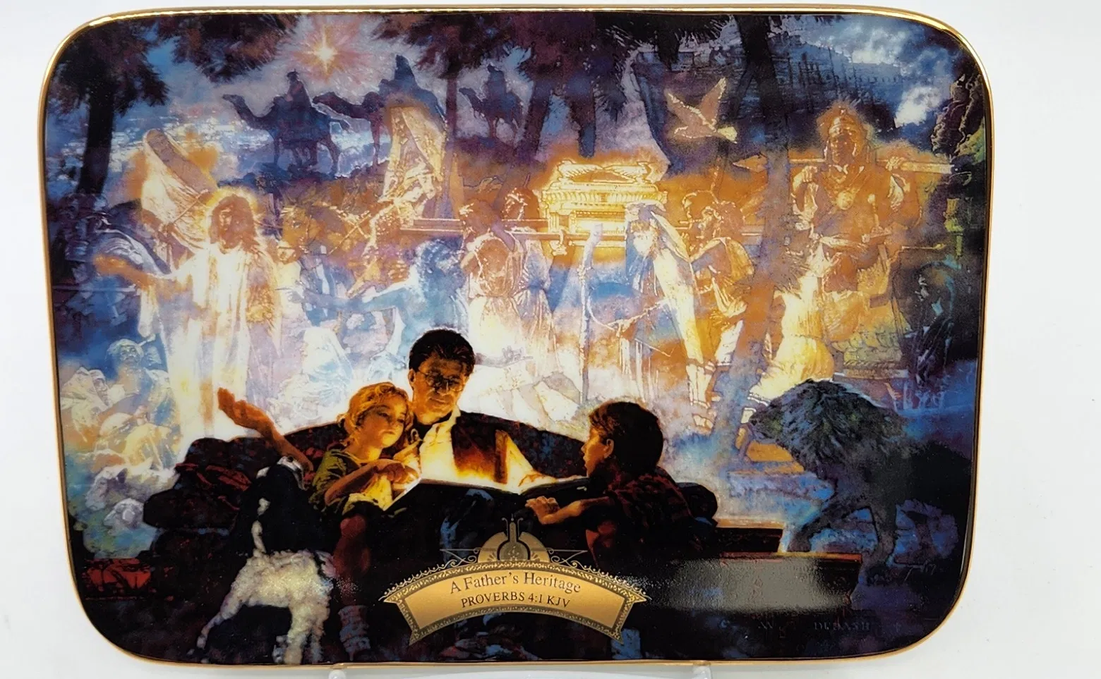Hear ye children the instruction of a father and attend to know understanding. Proverbs 4:1 KJV - 900044 NOTES: A powerful testimony to the importance of sharing a Godly heritage from generation to generation. This beautifully reproduced lithograph by C. Michael Dudash is framed and double matted and measures 31 x 25 inches. A collectible testimony for your home or office.. A Fathers Heritage Plate   by C. Michael Dudash  Image Copyright © 2025 by C. Michael Dudash