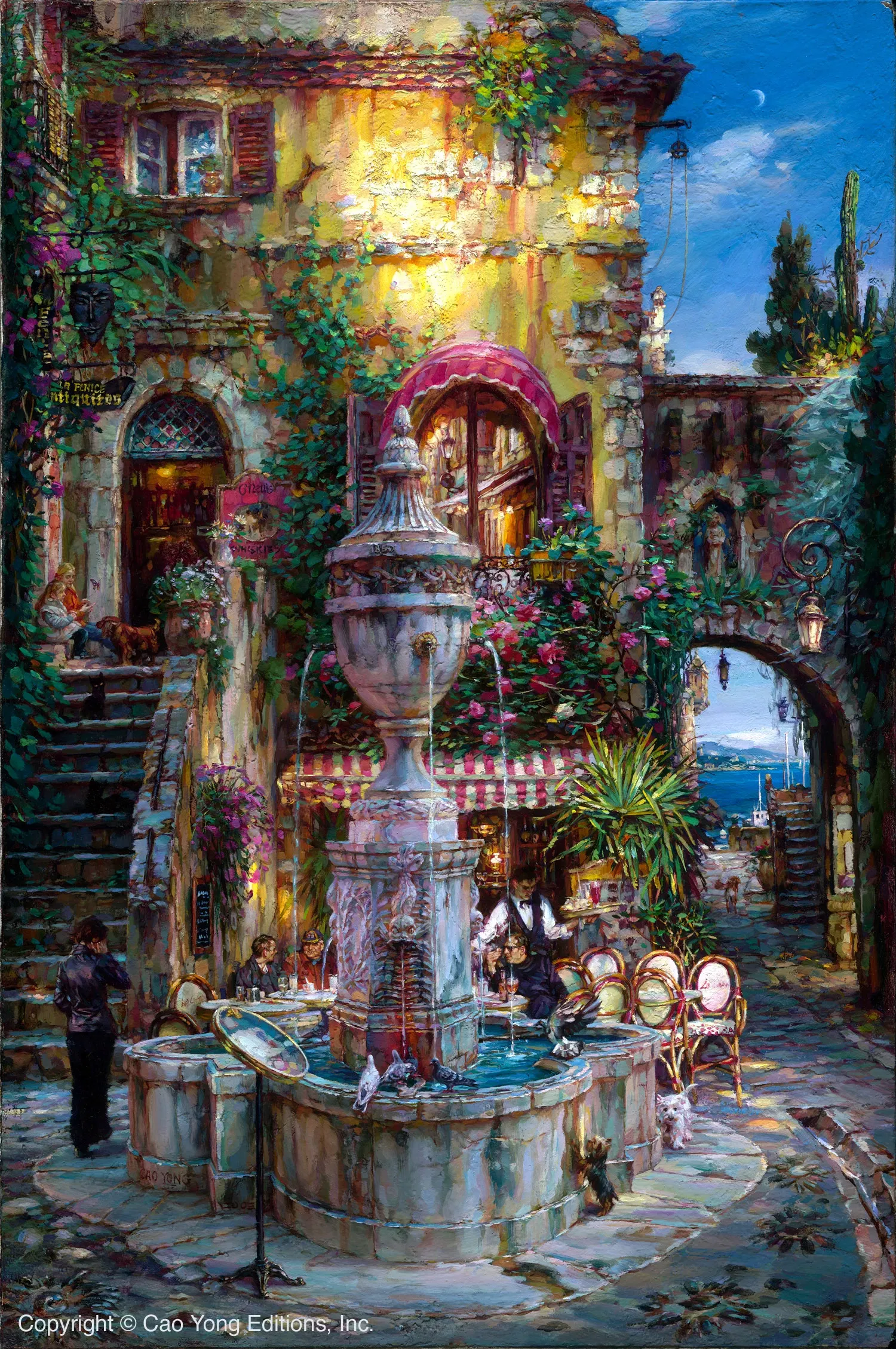 Status: In Stock Available | Condition: New | Edition:Limited Edition Giclee On Canvas The Mediterranean Series | Edition Size: Limited Edition 950 H/E | Dim:30” x 20” | Cao Yong| Item #: TwilightbytheFountain