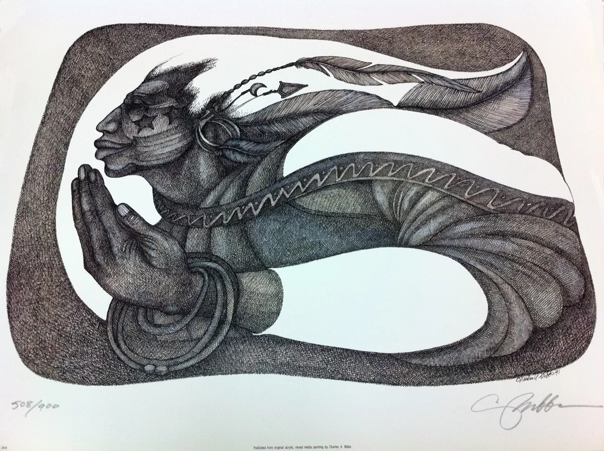 Charles Bibbs has always believed that we are the keepers of our culture, and as such, has spent much of his time working towards developing a cohesive, energized African American community. He is a committed activist on behalf of economic development and empowerment in the community, spending much of his free time holding seminars and workshops with young people. In his quest to preserve and develop the visual arts, Charles Bibbs has founded Art 2000, a non-profit visual art association that informs and inspires artists and art patrons alike. Out of this association has grown Images Magazine, the first national publication dedicated to ethnic art. Another one of Charles passions is jazz music; and by founding the Inland Empire Music and Arts Foundation, another non-profit organization, he has been able to bring an annual world class jazz and art festival to Southern California, while providing much needed funding for a number of art and music programs. Charles Bibbs artwork manages to fuse African, African American and Native American cultural themes, to make powerful cross cultural statements. His work is thought provoking and capable of arousing strong emotions regardless of ethnic, gender and generational affiliation. Although he may have an idea or vision in mind when painting a particular piece, Charles prefers each individual who views his work to gain a personal vision from his artwork. Across the board, his renderings convey a deep sense of spirituality, majesty, dignity, strength and grace. It is sufficient to say, however his works are viewed, whatever individual emotions they may evoke, they remain characteristically and recognizably Bibbs.