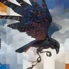 I idealize my characters and anthropomorphize them. I saw the raven in First Land on a fence post with his wings like that then sought to improve on it. I always try to create something on my own, to say something new.”
