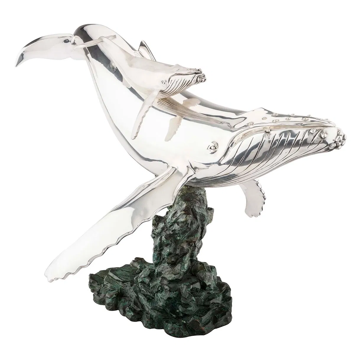 Dargenta Silver Humpback Mother & Calf Whale Statue