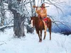NOTES: David Mann paints the Native Americans with an intimate knowledge of their culture. This current work is a quiet, wintry landscape in which a lone warrior on his horse waits among the snow-covered branches of a tree. With his rifle over his shoulder, perhaps this warrior has detected an animal and is on guard for the opportunity to return to his camp with sustenance for everyone..