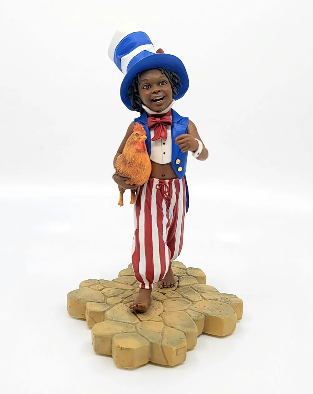 "I always knew I wanted to create Ebony Visions'. As an artist who happens to be black, I had distinct ideas about what I would like to see in the line." The elegant compeling figurines he created for the collection are a blen of both Art Nouveau and African culture, which Thomas calls "Afro-Nouveau." - Thomas Blackshear .Thomas Blackshear introduced Ebony Visions in April 1995 with the release of the first six Ebony Visions designs, The Storyteller, The Protector, The Nurturer, Siblings, Madonna and Tender Touch. Since then, Thomas Blackshear has created many new designs to add to the Ebony Visions collection. Thomas Blackshear's Ebony Visions collection is a master work of romantic symbolism. As with his paintings, these sculptures demonstrate Thomas Blackshear's incredible sense of design, unique eclectic style, and extraordinary mastery of color. Elegant drapery and delicate detail tantalize the eye while revealing each sculpted form. Thomas Blackshear's Ebony Visions depicts a full range of emotions that are both powerful and at the same time subtle. He deliberately portrays his Ebony Visions figures in a timeless setting in order to transcend a specific time, place, or culture. This unique collection of limited edition figurines emphasizes the beauty of the human form and symbolizes universal aspirations and ideals of humankind depicted through images that reflect the unique characteristics of the African American culture. For centuries classical beauty has been portrayed predominantly by white artisans who represent white subjects in their art. In this romantic and subtle tour de force, Thomas Blackshear creates a new vision of beauty and human emotion, an Ebony Vision.