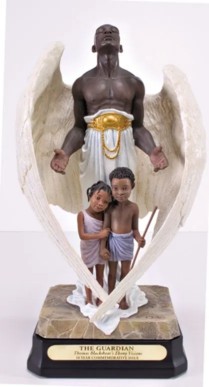 "I always knew I wanted to create Ebony Visions'. As an artist who happens to be black, I had distinct ideas about what I would like to see in the line." The elegant compeling figurines he created for the collection are a blen of both Art Nouveau and African culture, which Thomas calls "Afro-Nouveau." - Thomas Blackshear .Thomas Blackshear introduced Ebony Visions in April 1995 with the release of the first six Ebony Visions designs, The Storyteller, The Protector, The Nurturer, Siblings, Madonna and Tender Touch. Since then, Thomas Blackshear has created many new designs to add to the Ebony Visions collection. Thomas Blackshear's Ebony Visions collection is a master work of romantic symbolism. As with his paintings, these sculptures demonstrate Thomas Blackshear's incredible sense of design, unique eclectic style, and extraordinary mastery of color. Elegant drapery and delicate detail tantalize the eye while revealing each sculpted form. Thomas Blackshear's Ebony Visions depicts a full range of emotions that are both powerful and at the same time subtle. He deliberately portrays his Ebony Visions figures in a timeless setting in order to transcend a specific time, place, or culture. This unique collection of limited edition figurines emphasizes the beauty of the human form and symbolizes universal aspirations and ideals of humankind depicted through images that reflect the unique characteristics of the African American culture. For centuries classical beauty has been portrayed predominantly by white artisans who represent white subjects in their art. In this romantic and subtle tour de force, Thomas Blackshear creates a new vision of beauty and human emotion, an Ebony Vision.