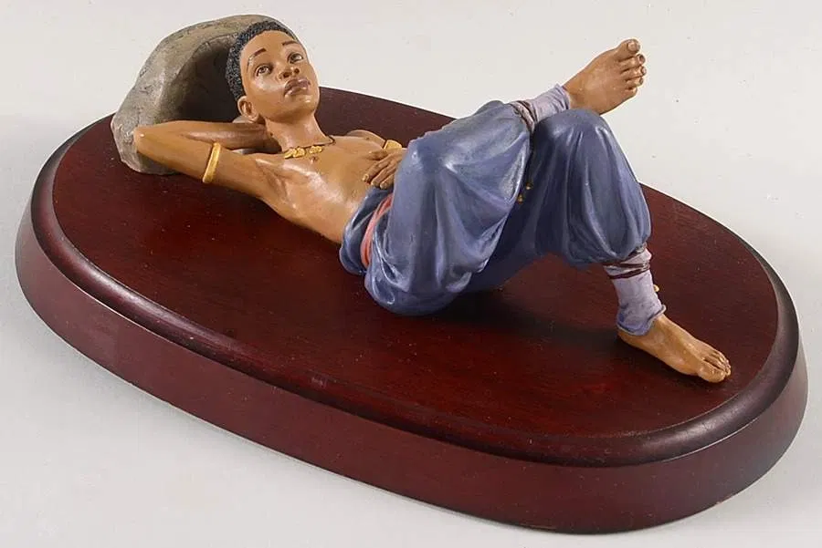 "I always knew I wanted to create Ebony Visions'. As an artist who happens to be black, I had distinct ideas about what I would like to see in the line." The elegant compeling figurines he created for the collection are a blen of both Art Nouveau and African culture, which Thomas calls "Afro-Nouveau." - Thomas Blackshear .Thomas Blackshear introduced Ebony Visions in April 1995 with the release of the first six Ebony Visions designs, The Storyteller, The Protector, The Nurturer, Siblings, Madonna and Tender Touch. Since then, Thomas Blackshear has created many new designs to add to the Ebony Visions collection. Thomas Blackshear's Ebony Visions collection is a master work of romantic symbolism. As with his paintings, these sculptures demonstrate Thomas Blackshear's incredible sense of design, unique eclectic style, and extraordinary mastery of color. Elegant drapery and delicate detail tantalize the eye while revealing each sculpted form. Thomas Blackshear's Ebony Visions depicts a full range of emotions that are both powerful and at the same time subtle. He deliberately portrays his Ebony Visions figures in a timeless setting in order to transcend a specific time, place, or culture. This unique collection of limited edition figurines emphasizes the beauty of the human form and symbolizes universal aspirations and ideals of humankind depicted through images that reflect the unique characteristics of the African American culture. For centuries classical beauty has been portrayed predominantly by white artisans who represent white subjects in their art. In this romantic and subtle tour de force, Thomas Blackshear creates a new vision of beauty and human emotion, an Ebony Vision.