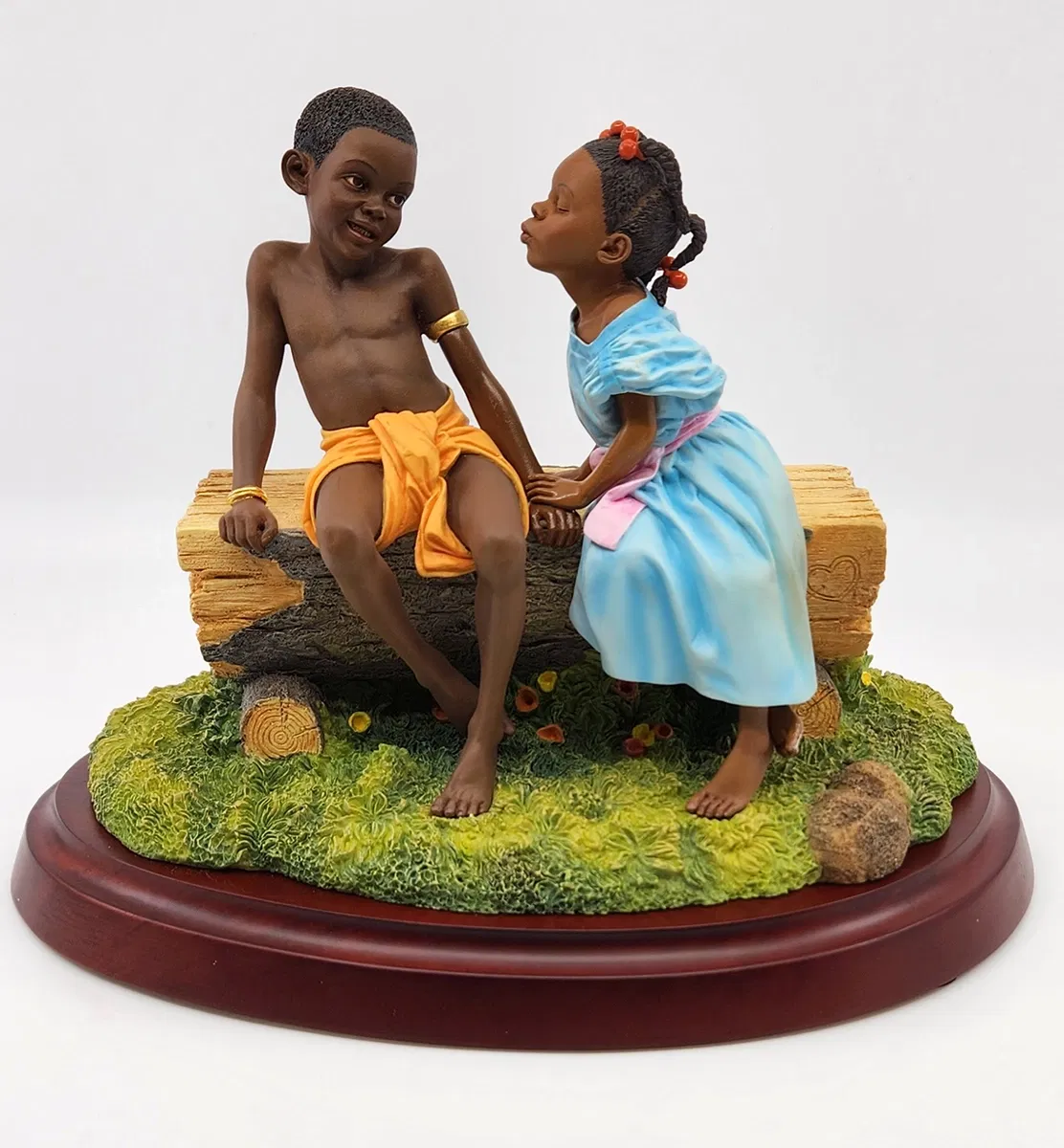 "I always knew I wanted to create Ebony Visions'. As an artist who happens to be black, I had distinct ideas about what I would like to see in the line." The elegant compeling figurines he created for the collection are a blen of both Art Nouveau and African culture, which Thomas calls "Afro-Nouveau." - Thomas Blackshear .Thomas Blackshear introduced Ebony Visions in April 1995 with the release of the first six Ebony Visions designs, The Storyteller, The Protector, The Nurturer, Siblings, Madonna and Tender Touch. Since then, Thomas Blackshear has created many new designs to add to the Ebony Visions collection. Thomas Blackshear's Ebony Visions collection is a master work of romantic symbolism. As with his paintings, these sculptures demonstrate Thomas Blackshear's incredible sense of design, unique eclectic style, and extraordinary mastery of color. Elegant drapery and delicate detail tantalize the eye while revealing each sculpted form. Thomas Blackshear's Ebony Visions depicts a full range of emotions that are both powerful and at the same time subtle. He deliberately portrays his Ebony Visions figures in a timeless setting in order to transcend a specific time, place, or culture. This unique collection of limited edition figurines emphasizes the beauty of the human form and symbolizes universal aspirations and ideals of humankind depicted through images that reflect the unique characteristics of the African American culture. For centuries classical beauty has been portrayed predominantly by white artisans who represent white subjects in their art. In this romantic and subtle tour de force, Thomas Blackshear creates a new vision of beauty and human emotion, an Ebony Vision.