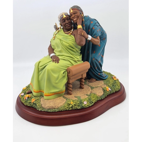 "I always knew I wanted to create Ebony Visions'. As an artist who happens to be black, I had distinct ideas about what I would like to see in the line." The elegant compeling figurines he created for the collection are a blen of both Art Nouveau and African culture, which Thomas calls "Afro-Nouveau." - Thomas Blackshear .Thomas Blackshear introduced Ebony Visions in April 1995 with the release of the first six Ebony Visions designs, The Storyteller, The Protector, The Nurturer, Siblings, Madonna and Tender Touch. Since then, Thomas Blackshear has created many new designs to add to the Ebony Visions collection. Thomas Blackshear's Ebony Visions collection is a master work of romantic symbolism. As with his paintings, these sculptures demonstrate Thomas Blackshear's incredible sense of design, unique eclectic style, and extraordinary mastery of color. Elegant drapery and delicate detail tantalize the eye while revealing each sculpted form. Thomas Blackshear's Ebony Visions depicts a full range of emotions that are both powerful and at the same time subtle. He deliberately portrays his Ebony Visions figures in a timeless setting in order to transcend a specific time, place, or culture. This unique collection of limited edition figurines emphasizes the beauty of the human form and symbolizes universal aspirations and ideals of humankind depicted through images that reflect the unique characteristics of the African American culture. For centuries classical beauty has been portrayed predominantly by white artisans who represent white subjects in their art. In this romantic and subtle tour de force, Thomas Blackshear creates a new vision of beauty and human emotion, an Ebony Vision.