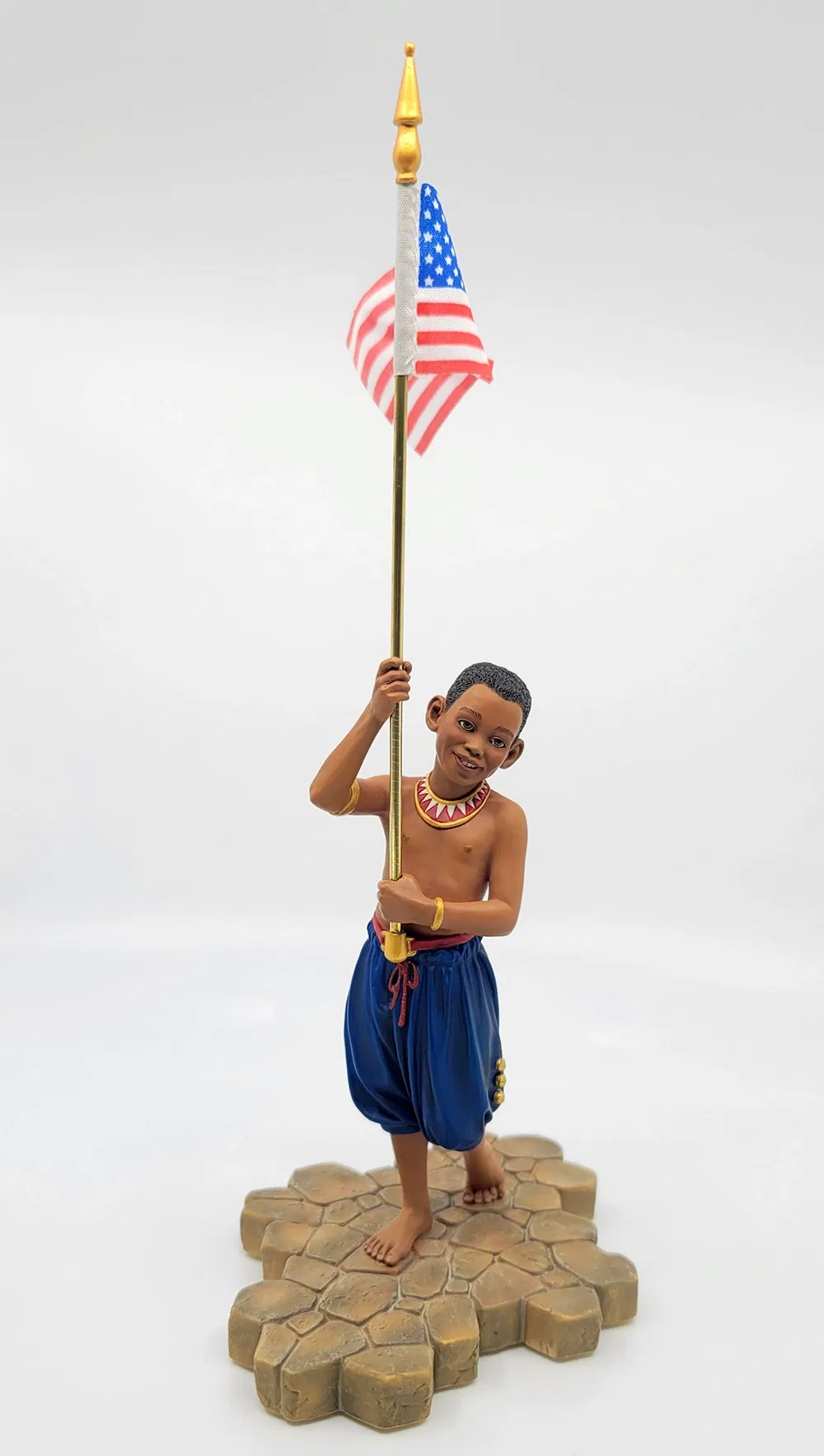 "I always knew I wanted to create Ebony Visions'. As an artist who happens to be black, I had distinct ideas about what I would like to see in the line." The elegant compeling figurines he created for the collection are a blen of both Art Nouveau and African culture, which Thomas calls "Afro-Nouveau." - Thomas Blackshear .Thomas Blackshear introduced Ebony Visions in April 1995 with the release of the first six Ebony Visions designs, The Storyteller, The Protector, The Nurturer, Siblings, Madonna and Tender Touch. Since then, Thomas Blackshear has created many new designs to add to the Ebony Visions collection. Thomas Blackshear's Ebony Visions collection is a master work of romantic symbolism. As with his paintings, these sculptures demonstrate Thomas Blackshear's incredible sense of design, unique eclectic style, and extraordinary mastery of color. Elegant drapery and delicate detail tantalize the eye while revealing each sculpted form. Thomas Blackshear's Ebony Visions depicts a full range of emotions that are both powerful and at the same time subtle. He deliberately portrays his Ebony Visions figures in a timeless setting in order to transcend a specific time, place, or culture. This unique collection of limited edition figurines emphasizes the beauty of the human form and symbolizes universal aspirations and ideals of humankind depicted through images that reflect the unique characteristics of the African American culture. For centuries classical beauty has been portrayed predominantly by white artisans who represent white subjects in their art. In this romantic and subtle tour de force, Thomas Blackshear creates a new vision of beauty and human emotion, an Ebony Vision.