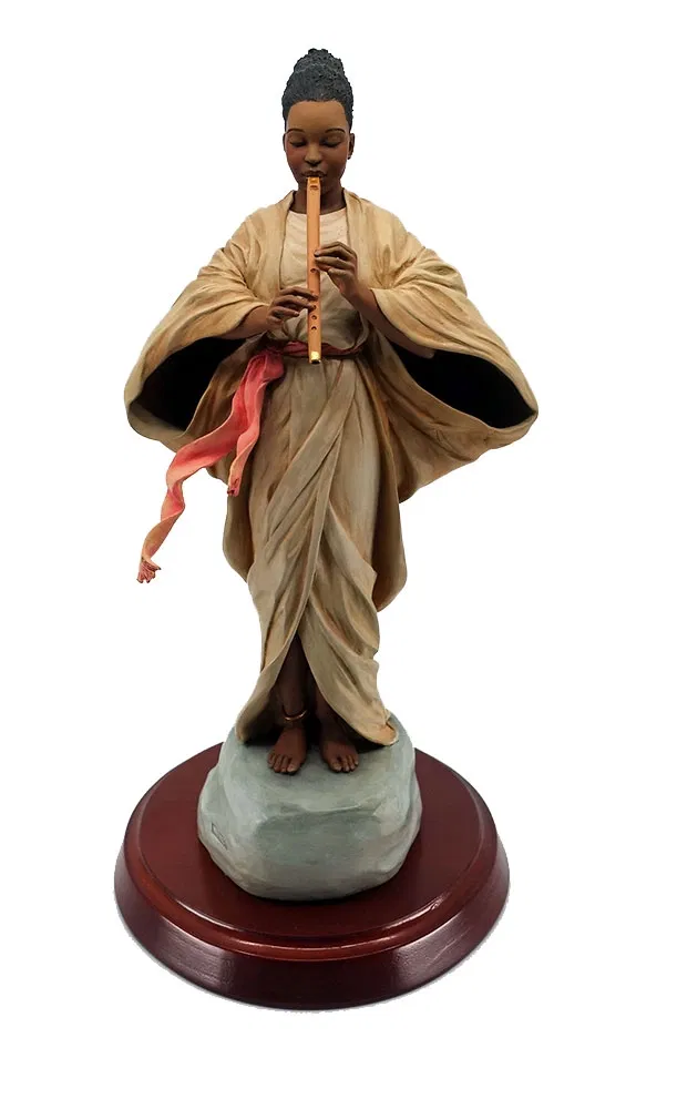 "I always knew I wanted to create Ebony Visions'. As an artist who happens to be black, I had distinct ideas about what I would like to see in the line." The elegant compeling figurines he created for the collection are a blen of both Art Nouveau and African culture, which Thomas calls "Afro-Nouveau." - Thomas Blackshear .Thomas Blackshear introduced Ebony Visions in April 1995 with the release of the first six Ebony Visions designs, The Storyteller, The Protector, The Nurturer, Siblings, Madonna and Tender Touch. Since then, Thomas Blackshear has created many new designs to add to the Ebony Visions collection. Thomas Blackshear's Ebony Visions collection is a master work of romantic symbolism. As with his paintings, these sculptures demonstrate Thomas Blackshear's incredible sense of design, unique eclectic style, and extraordinary mastery of color. Elegant drapery and delicate detail tantalize the eye while revealing each sculpted form. Thomas Blackshear's Ebony Visions depicts a full range of emotions that are both powerful and at the same time subtle. He deliberately portrays his Ebony Visions figures in a timeless setting in order to transcend a specific time, place, or culture. This unique collection of limited edition figurines emphasizes the beauty of the human form and symbolizes universal aspirations and ideals of humankind depicted through images that reflect the unique characteristics of the African American culture. For centuries classical beauty has been portrayed predominantly by white artisans who represent white subjects in their art. In this romantic and subtle tour de force, Thomas Blackshear creates a new vision of beauty and human emotion, an Ebony Vision.