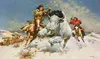 Frank McCarthy knew from an early age that his passion was art, copying from his favorite comic strips. Encouraged by his parents and art teachers, he enrolled at fourteen in New York s Art Students League, studying first under George Bridgeman and then under Reginald Marsh. After high school graduation, he studied for three years at Brooklyn s Pratt Institute with a major in illustration. Following his studies, McCarthy embarked on his art career as a commercial illustrator in New York City. He painted illustrations for most of the paperback book publishers, magazines, movie companies and advertisements. He created works that became posters for such movies as the James Bond series. Frank McCarthy s talents were highly sought-after by art directors enabling him to work as a free lance illustrator for many years. His art career spanned over 50 years, beginning with a request for a western cover for a magazine by an art director. He left the world of commercial art in 1968, and began his fine art career after moving to Sedona, Arizona. Frank McCarthy s dynamic paintings frequently featured the people of the west with a special emphasis on the Plains Indian, mountain men and cavalry that comprised the lore and lure of the Old West. Appropriately entitled the "Dean of Western Action Painters," Frank McCarthy s art was unsurpassed for its motion, drama and absolute attention to accuracy and detail. Highly collected and frequently imitated, Frank McCarthy s works were treasured throughout the world as classic examples of contemporary Western Art. Retrospective showings of Frank McCarthy s paintings have been held at the Museum of the Southwest, Midland, Texas; the R.W. Norton Museum in Shreveport, La.; the Thomas Gilcrease Museum in Tulsa, Ok.; and in 1992, at the Cowboy Artist of America Museum (now known as National Center for American Western Art) in Kerrville, Texas. Frank McCarthy was invited to join the prestigious Cowboy Artists of America organization in 1975 and was an active member in the CAA group for 23 years. He was inducted into the Society of Illustrators Hall of Fame in 1997 Three books of his paintings have been published-The Art of Frank C. McCarthy, Frank C. McCarthy, Fifteen Anniversary commemorative and The Old West, a leather-bound Collector s Edition. More than 100 limited edition art prints of his paintings have been published since 1974 by The Greenwich Workshop. McCarthy passed away in 2002 at his home of 30 years in the beautiful red rocks of Sedona, Arizona.