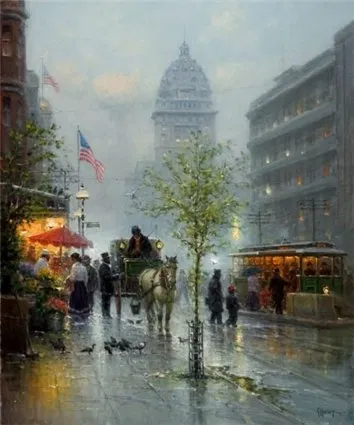 G Harvey Market Street Trolleys Giclee On Canvas Artist Proof