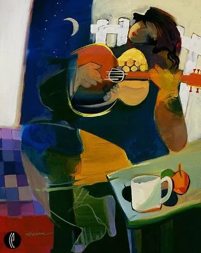 Born in the city of Shiraz, Iran in 1951, Hessam Abrishami was the son of middle class parents and one of eight brothers and sisters. At age 15, through the inspiration and encouragement of a high school teacher, Hessam discovered both his love of art and his own talent for painting. As a result he became almost obsessed with painting. Hessam, at age 17, received his first award for painting and went on to win top honors in painting in an all-country student competition in Iran. At age 19, he achieved first place honors in the "Iranian New Artists Competition." Many other national and international honors and recognitions have followed since. He went on to study in Italy - a place he considered "the center of art in Europe." It was in Perugia, Italy that Hessam studied and completed his Master's Degree in Fine Arts at the Accademi De Belle Arti "Pietro Vanucci." Hessam emigrated to Los Angeles, California where he continues to expand his creativity. He explores a realm which the French press has called "A statement in the fluidity of human figures . . . He creates a tension between each figure, a kinship of place or condition that provokes the viewer to seek reasons for such relationships." Greatly influenced by modern masters from Cezanne to Picasso, Hessam's boldly colorful paintings are filled with love and laughter, music and dance. Hessam Abrishami has provided the world with images that capture an essence of love and romance.