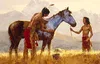 Horse of a Different Color — Artist Proof Canvas - TERPHCL NOTES: Horse of a Different Color — Artist Proof Canvas - I once read an account of a Cheyenne warrior who painted his body and his horse’s body entirely blue, says Howard Terpning. Just imagine the startling effect that must have had on his enemies as he charged them in battle. That description gave me the idea for the title (which seemed obvious). Adding the warrior’s son in the painting felt logical and gave the picture a higher level of human interest. To have listened in on the father and son conversation as this warrior prepared himself for battle would have been something. As we made the selection of this painting to reproduce, it occurred to us that this is the first Terpning work we have published that focused so directly on the relationship between a father and a son. It surprised us that there were actually so few paintings he had done on the subject. We think that makes this release kind of special. By the way, Howard’s son Steven modeled for the boy.. Horse of a Different Color  Artist Proof Canvas by Howard Terpning  Image Copyright © 2025 by Howard Terpning
