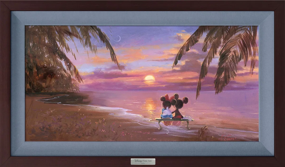 The Perfect Sunset - CESPERS NOTES: The Perfect Sunset - Silver Series - Do you remember the first time you ever watched a Disney film? That childlike wonderment? That complete immersion in story? These feelings, among many others, are what Disney Fine Art"s newest collection celebrates. From the "silver screen" to our new Silver Series, Walt Disney"s magical gift for storytelling is alive and well. These beautiful, modestly priced, limited editions arrive to you in a custom frame that is adorned with a Silver Series plaque commemorating all the memories Disney Animation has created over the years. This is a truly magical opportunity for you to own a bit of Disney History, and transport yourself back to when these classic characters first jumped off the silver screen, and right into your heart.