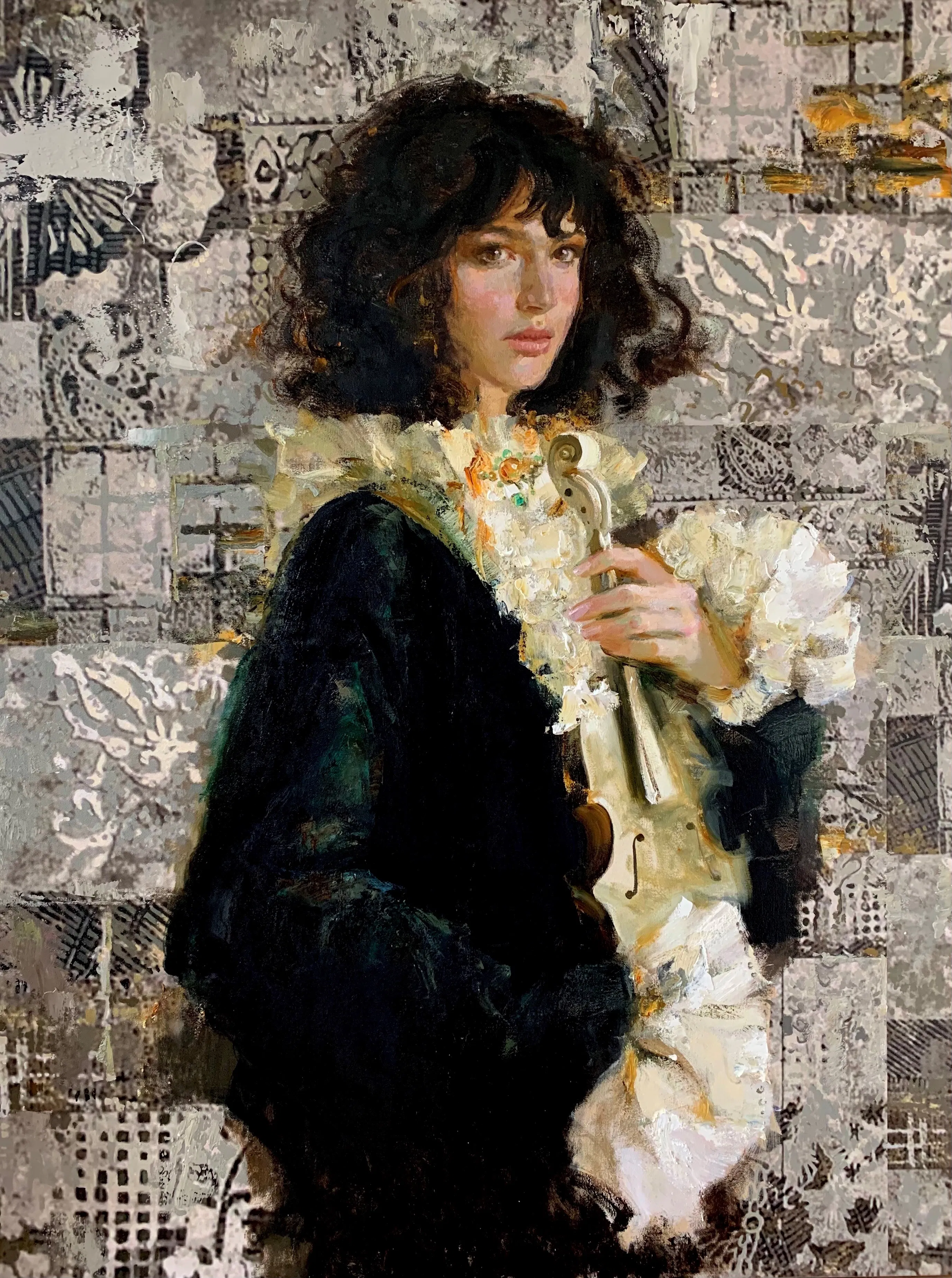Irene Sheri Violinist Hand-Embellished Giclee on Canvas