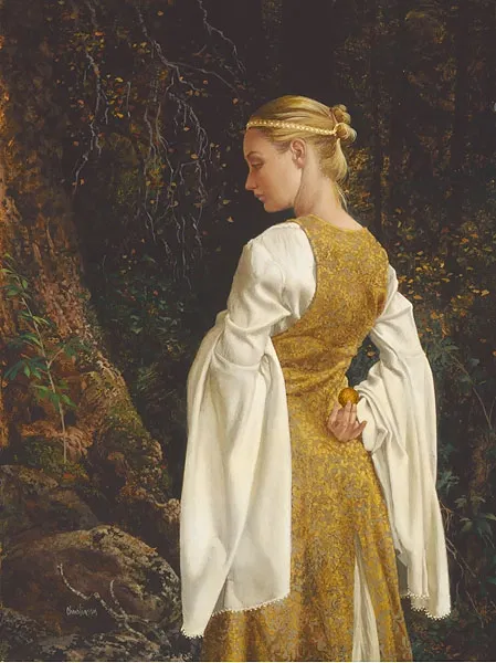 Foremost fantasy artist James C. Christensen captures the precise moment of truth where the delicate fingertips of the princess holds her most precious object and contemplates the cost of keeping it, against the cost of sharing her love with the world. Luckily for that frog, she made the right choice.
