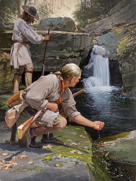 "John Buxton was born in the small southern town of Oxford, North Carolina. He excelled at art from childhood. After two years of general college in his home state, he earned his art degree from the Art Center College of Design in Los Angeles, California. He was a successful illustrator for 31 years, working in Detroit, Cleveland and Pittsburgh. During this time, he illustrated two books for the National Geographic Society and developed a fascination with documentation and truth in art. In 1994 he left illustration and began painting subjects more personal to his interests. Buxton soon began exhibiting his painting, placing two works in the Birds in Art show at the Leigh Yawkey Woodson Art Museum. Northlight Books later reproduced these two paintings in The Best of Wildlife Art 2 by Rachel Rubin World. He entered, and placed in the Top 100 in the Arts For The Parks competition. The Society of Animal Artists elected him to membership and invited him to show in their national exhibitions. He exhibited with the American Academy of Equine Artists before settling into his true niche: Historical Art. Buxton s historical images of the 18th century often depict scenes from the birth of our nation, allowing the viewer to witness momentous events or experiences from everyday life of the frontier. Many historical sites display Buxton s extensively researched works and several documentary films have been aired that featured his paintings. Buxton s paintings are available as a CD Teaching Aid for educators wishing to give students a more intimate view of America s historical heritage, effectively making history come alive. His original paintings and commissioned works are in great demand. Buxton exhibits his original art at Settlers West Galleries in Arizona, Gallery One of Ohio and Lord Nelson s Gallery in Gettysburg. Buxton has shown his artwork at the Gilcrease Museum and his largest painting; a life-size standing portrait of Abraham Lincoln hangs in a place of honor at the National Civil War Museum.