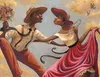 Born and raised in Clarksburg, West Virginia, John Holyfield was orphaned and reared by his grandmothers. Early in childhood, his interest in art was evident. Encouraged by teachers, family and friends, he studied art throughout school and went on to Howard University and the university of D.C. to major in graphic design. John's interests, however, soon switched to the finer arts. Realizing the appeal of his works, he entered the art market and has become a leading African-American artist. John's work has a strong southern folksy feel, capturing the essence of rural life. John paints with the maturity of a much older artist through the use of images that seem from an era past, yet with timeless messages. John's main themes are family, spirituality, and culture. For much of the subject matter, he draws from his family members, childhood memories and stories from his grandmothers. His grandmothers are his greatest inspirations; which explains the repetition of women in his works. Growing up a Baptist, he was captivated by the church and often depicts church scenes and images dealing with spirituality. Most memorable were the choir and the music; which are also repeated themes. John sensed, early on, that being black was something unique and special. he noticed that aspects such as music, spirituality, heritage, ways and traditions set his race apart from others. and he felt compelled to capture this experience, visually, on canvas. Such artists as Ernie Barnes, Norman Rockwell, and Frederic Leighton inspire John's style. Like Barnes, his compositions are full fo movement and his characters elongated and fluid. Most of his paintings, at a glance, tell a story or create a scenario. This style of visual story-telling is similar to Rockwell. John's dramatic use of light and shadows within his images is a direct influence of Leighton. Browse and enjoy the great African American Art work from one of Today's most collected African American Artists, John Holyfield.