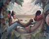 Born and raised in Clarksburg, West Virginia, John Holyfield was orphaned and reared by his grandmothers. Early in childhood, his interest in art was evident. Encouraged by teachers, family and friends, he studied art throughout school and went on to Howard University and the university of D.C. to major in graphic design. John's interests, however, soon switched to the finer arts. Realizing the appeal of his works, he entered the art market and has become a leading African-American artist. John's work has a strong southern folksy feel, capturing the essence of rural life. John paints with the maturity of a much older artist through the use of images that seem from an era past, yet with timeless messages. John's main themes are family, spirituality, and culture. For much of the subject matter, he draws from his family members, childhood memories and stories from his grandmothers. His grandmothers are his greatest inspirations; which explains the repetition of women in his works. Growing up a Baptist, he was captivated by the church and often depicts church scenes and images dealing with spirituality. Most memorable were the choir and the music; which are also repeated themes. John sensed, early on, that being black was something unique and special. he noticed that aspects such as music, spirituality, heritage, ways and traditions set his race apart from others. and he felt compelled to capture this experience, visually, on canvas. Such artists as Ernie Barnes, Norman Rockwell, and Frederic Leighton inspire John's style. Like Barnes, his compositions are full fo movement and his characters elongated and fluid. Most of his paintings, at a glance, tell a story or create a scenario. This style of visual story-telling is similar to Rockwell. John's dramatic use of light and shadows within his images is a direct influence of Leighton. Browse and enjoy the great African American Art work from one of Today's most collected African American Artists, John Holyfield.