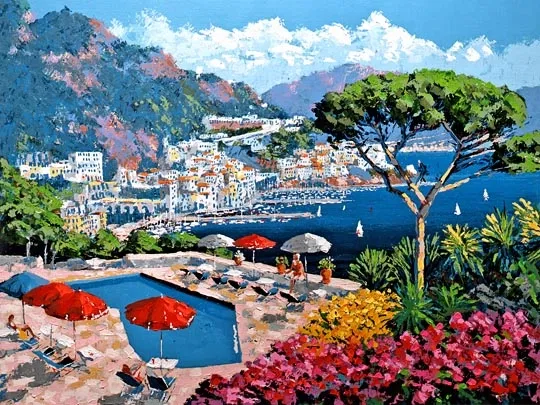 "Let the heart be free. Being alive, inhale the air. Feel the ocean breeze. Deep blue of boundless ocean and sky. Sun shines over the coast city. Horizon so wide and endless. Always energetic, always dynamic. Not a hint of solitary life here." ” Kerry Hallam Kerry Hallam is as refreshing and spirited as his paintings. He creates enticing images through bold palettes and captivating compositions. Born in Northern England, Hallam showed early artistic talent when he won a six-year scholarship to London University's Central College of Art. After a formal art education under British master painters Leslie Cole, Patrick Heron and Hans Tisdale, he completed his military service in the prestigious Gurkha brigade in Hong Kong and Malaya. Hallam's talent was further acknowledged when he was selected for inclusion in Britain's Royal Society of Artists in Watercolour. Through innumerable one-man shows, Kerry Hallam has been honored by galleries around the world having shown at exhibitions in Paris, London, Tokyo, New York, Beverly Hills, Hong Kong, San Francisco and many other cities. His work has been featured in countless newspaper and magazine articles as well as in PBS television specials.