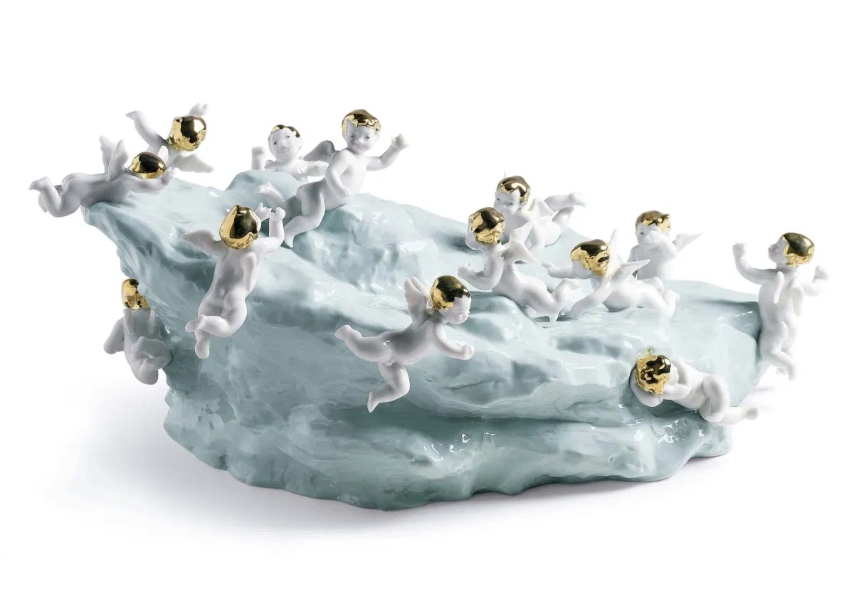 Lladro Discovery - Cherubs On Large Turq. Earth Porcelain Figurine 01007239