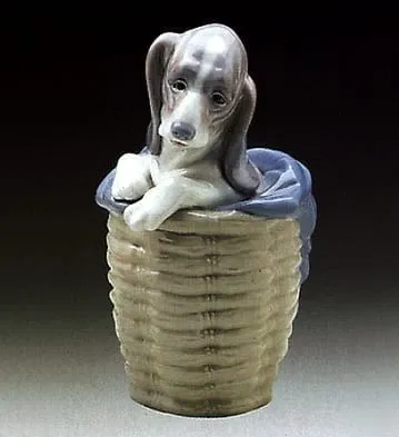 Lladro Dog in Basket Porcelain Figurine 01001128