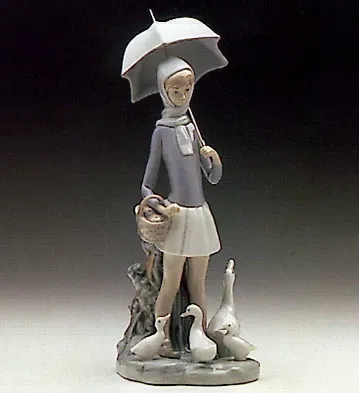 Lladro Girl With Umberella And Geese - Open Box Porcelain Figurine 4510G