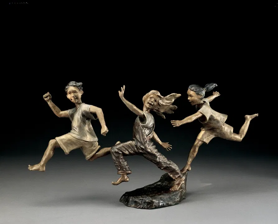 Mark Hopkins is considered one of the premier sculptors in the United States today. From tabletop sculpture to monuments, his work is displayed in homes, offices, and public settings around the world. Mark Hopkins' work is in everyway, a reflection of its creator. It reveals Mark's total fascination with nearly every conceivable aspect of life: from history, children, sports, music and religion to wildlife of the land, sea and air. With a style so flowing and alive it has been called "bronze in motion," the work is as passionate and expressive as the artist himself. For as long as he can remember, Mark has been captivated by form and design. From the time he was young boy, with the encouragement of family and teachers, he worked to develop his innate talent, and explore the various techniques and mediums of sculpture. In addition to his skill as an artist, Mark made himself a technical expert in the art of "lost wax" bronze casting. At the Mark Hopkins Sculpture foundry, Mark monitors the casting process, ensuring that the integrity of his work is maintained throughout its creation in bronze. With the help of many talented craftsmen, Mark endeavors to establish an enduring legacy of high-quality bronze sculpture. It has taken half a lifetime for Mark to attain his preeminent status in the world of art. For many years, the necessity of providing for his large family took Mark into other, more traditional vocations. Throughout those years, though, Mark never stopped sculpting. He knew in his heart that it was the work he was born to do. From the many challenges and experiences of his life came a remarkably unique style of art. Mark Hopkins constantly challenges himself to translate the richness of life an" nobility of the human soul into enduring sculptural form. In his words, "I strive to express beyond the image, to catch spirit, to reveal deeper emotions, and to share joy." As he continues to rise to that challenge, his work is attaining an honored place in the history of art.