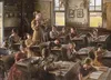 "In my mind, each child has a story. Some are related to each other. There is the girl who gets jealous because another girl is talking to a boy she likes. There is the boy with adoring eyes for his teacher and the girl that has eyes on him. Then there's the kid who is more interested in his chalk than the lesson and the boy who really is having trouble understanding the lesson. I show a little slice of each of their personalities. Teachers and their classes from this period often appear grim-faced in photographs because of the long exposures required to capture the image. But children are not grim! I used real children as my models to make this room feel alive. I also imagined a background story for the teacher. She is new to her profession, full of enthusiasm yet a little nanve about whom she is entrusted to teach. From crushes to jealousy to apathy to determination, it's all there in that little one room schoolhouse."