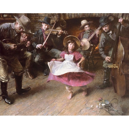 Morgan€™s daughter, Brittany, posed for this painting when she was five years old. €œLooking back on this painting 10 years later, I can still feel the music and remember the inspiration that stirred this idea,€ says Morgan. €œBrittany and I were visiting a Cowboy Poetry and Music festival and at one point she began to dance to some musicians much like in the painting. I later re-created that scene in my studio. I will always cherish the memories of Brittany and I dancing together as the musicians played for us.€