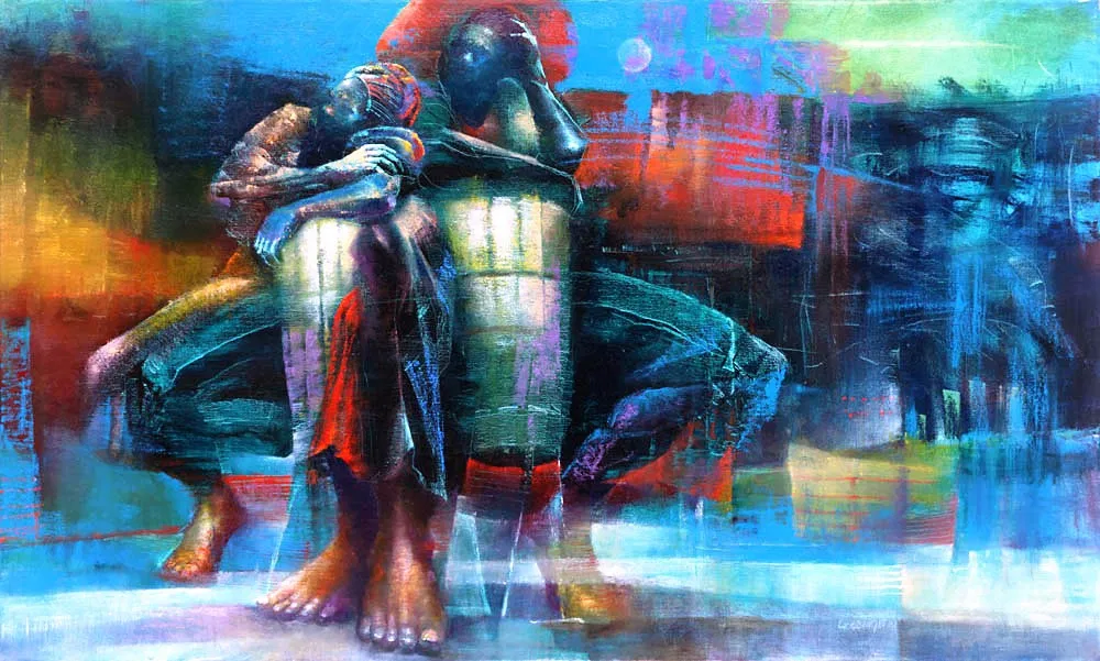 Thanks to television and movies, millions of people see the works of Paul Goodnight and don't even know it. You could be watching Will Smith in "Fresh Prince of Bel Air," "Seinfeld," "ER" or the award-winning movie "Ghost," and at some point, you will probably notice his distinctive paintings on the walls. Goodnight has developed his own unique aesthetic philosophy to document the humanity of people around the world, often incorporating African themes and symbols to provide depths of history and culture. For his ability to capture these elements and integrate them with sport, Goodnight was selected as the American Sport Art Museum and Archives' 1997 Sport Artist of the Year. Goodnight has developed a strong and influential following. Former Detroit Pistons point guard Isiah Thomas and actor Wesley Snipes are just two frequent buyers of Goodnight's work. He routinely sends pieces to the Hollywood Cinema Arts where TV and movie set designers choose artwork for productions. His first break came in 1982 when a print was selected for "The Cosby Show" and he continues to receive acclaim and recognition today. This African-American artist, who specializes in ethnic images, never had it easy. Traumatized by two years of fierce combat in Vietnam, Goodnight returned home mentally devastated. It wasn't until he looked to his childhood passion of art that he turned the corner to recovery. His hobby quickly turned into a profession after he received his degree from the Massachusetts College of Art in 1976. His creative efforts are nurtured and inspired by several artists. Today, Goodnight continues to interact and correspond with master African American artists and mentors, John Biggers and Alan Rohan Crite. Through the years, he has developed his own unique aesthetic philosophy to document the humanity of people around the world. His African themes and symbols provide a one-of-a-kind depth to history and culture. He has contributed much to the athletics arena of art, most notably in 1996, when he created "Feet Don't Fail Me Now" to commemorate the Centennial Olympic Games in Atlanta. Goodnight has studied and he travels extensively to different parts of the world, living among the people of Russia, China, Haiti, Nicaragua, Africa and Brazil. It is during one of these travels to Senegal that the artist said he learned the meaning of black beauty. Goodnight finds that galleries are hesitant to show his ethnic images, focusing instead on the more classical Eurocentric works. Today, he continues to work in a variety of media, including acrylics, pastels and mixed media.