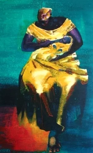 Thanks to television and movies, millions of people see the works of Paul Goodnight and don't even know it. You could be watching Will Smith in "Fresh Prince of Bel Air," "Seinfeld," "ER" or the award-winning movie "Ghost," and at some point, you will probably notice his distinctive paintings on the walls. Goodnight has developed his own unique aesthetic philosophy to document the humanity of people around the world, often incorporating African themes and symbols to provide depths of history and culture. For his ability to capture these elements and integrate them with sport, Goodnight was selected as the American Sport Art Museum and Archives' 1997 Sport Artist of the Year. Goodnight has developed a strong and influential following. Former Detroit Pistons point guard Isiah Thomas and actor Wesley Snipes are just two frequent buyers of Goodnight's work. He routinely sends pieces to the Hollywood Cinema Arts where TV and movie set designers choose artwork for productions. His first break came in 1982 when a print was selected for "The Cosby Show" and he continues to receive acclaim and recognition today. This African-American artist, who specializes in ethnic images, never had it easy. Traumatized by two years of fierce combat in Vietnam, Goodnight returned home mentally devastated. It wasn't until he looked to his childhood passion of art that he turned the corner to recovery. His hobby quickly turned into a profession after he received his degree from the Massachusetts College of Art in 1976. His creative efforts are nurtured and inspired by several artists. Today, Goodnight continues to interact and correspond with master African American artists and mentors, John Biggers and Alan Rohan Crite. Through the years, he has developed his own unique aesthetic philosophy to document the humanity of people around the world. His African themes and symbols provide a one-of-a-kind depth to history and culture. He has contributed much to the athletics arena of art, most notably in 1996, when he created "Feet Don't Fail Me Now" to commemorate the Centennial Olympic Games in Atlanta. Goodnight has studied and he travels extensively to different parts of the world, living among the people of Russia, China, Haiti, Nicaragua, Africa and Brazil. It is during one of these travels to Senegal that the artist said he learned the meaning of black beauty. Goodnight finds that galleries are hesitant to show his ethnic images, focusing instead on the more classical Eurocentric works. Today, he continues to work in a variety of media, including acrylics, pastels and mixed media.