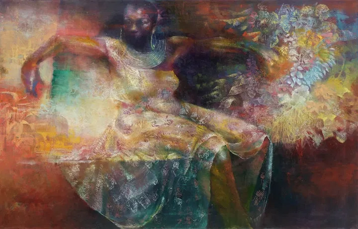 Thanks to television and movies, millions of people see the works of Paul Goodnight and don't even know it. You could be watching Will Smith in "Fresh Prince of Bel Air," "Seinfeld," "ER" or the award-winning movie "Ghost," and at some point, you will probably notice his distinctive paintings on the walls. Goodnight has developed his own unique aesthetic philosophy to document the humanity of people around the world, often incorporating African themes and symbols to provide depths of history and culture. For his ability to capture these elements and integrate them with sport, Goodnight was selected as the American Sport Art Museum and Archives' 1997 Sport Artist of the Year. Goodnight has developed a strong and influential following. Former Detroit Pistons point guard Isiah Thomas and actor Wesley Snipes are just two frequent buyers of Goodnight's work. He routinely sends pieces to the Hollywood Cinema Arts where TV and movie set designers choose artwork for productions. His first break came in 1982 when a print was selected for "The Cosby Show" and he continues to receive acclaim and recognition today. This African-American artist, who specializes in ethnic images, never had it easy. Traumatized by two years of fierce combat in Vietnam, Goodnight returned home mentally devastated. It wasn't until he looked to his childhood passion of art that he turned the corner to recovery. His hobby quickly turned into a profession after he received his degree from the Massachusetts College of Art in 1976. His creative efforts are nurtured and inspired by several artists. Today, Goodnight continues to interact and correspond with master African American artists and mentors, John Biggers and Alan Rohan Crite. Through the years, he has developed his own unique aesthetic philosophy to document the humanity of people around the world. His African themes and symbols provide a one-of-a-kind depth to history and culture. He has contributed much to the athletics arena of art, most notably in 1996, when he created "Feet Don't Fail Me Now" to commemorate the Centennial Olympic Games in Atlanta. Goodnight has studied and he travels extensively to different parts of the world, living among the people of Russia, China, Haiti, Nicaragua, Africa and Brazil. It is during one of these travels to Senegal that the artist said he learned the meaning of black beauty. Goodnight finds that galleries are hesitant to show his ethnic images, focusing instead on the more classical Eurocentric works. Today, he continues to work in a variety of media, including acrylics, pastels and mixed media.