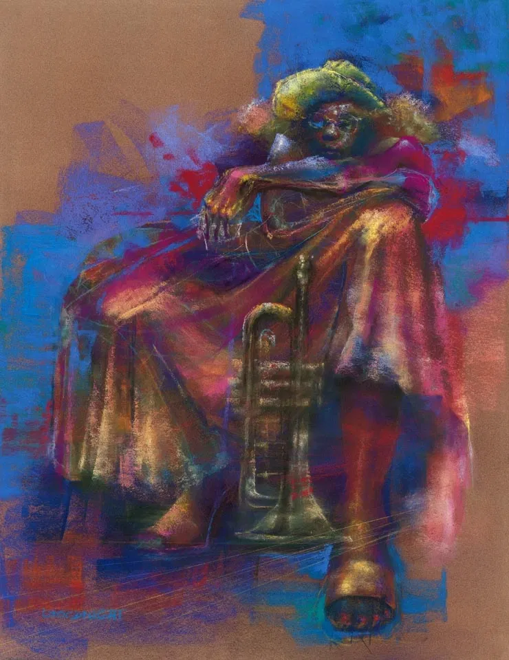 Trumpet Giclee - PGTRUMPET NOTES: Trumpet Giclee. Trumpet Giclee   by Paul Goodnight  is signed by the artist and comes with a certificate of authenticity. Image Copyright © 2025 by Paul Goodnight