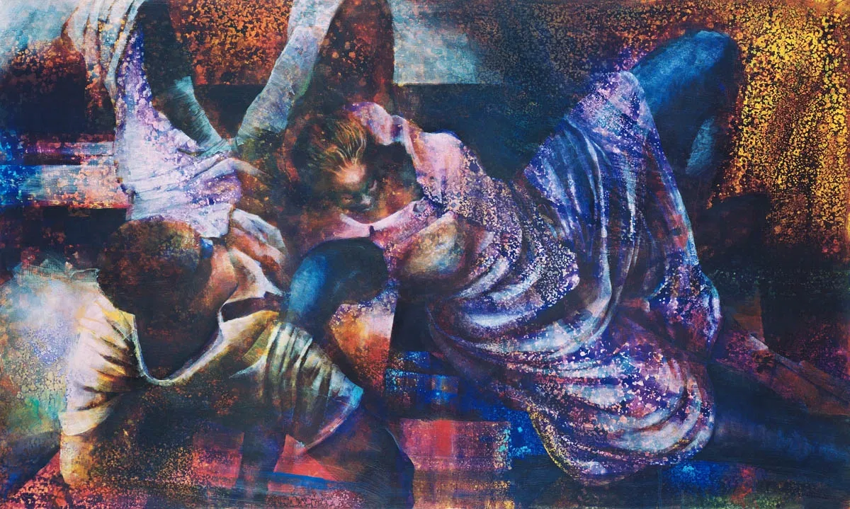 Thanks to television and movies, millions of people see the works of Paul Goodnight and don't even know it. You could be watching Will Smith in "Fresh Prince of Bel Air," "Seinfeld," "ER" or the award-winning movie "Ghost," and at some point, you will probably notice his distinctive paintings on the walls. Goodnight has developed his own unique aesthetic philosophy to document the humanity of people around the world, often incorporating African themes and symbols to provide depths of history and culture. For his ability to capture these elements and integrate them with sport, Goodnight was selected as the American Sport Art Museum and Archives' 1997 Sport Artist of the Year. Goodnight has developed a strong and influential following. Former Detroit Pistons point guard Isiah Thomas and actor Wesley Snipes are just two frequent buyers of Goodnight's work. He routinely sends pieces to the Hollywood Cinema Arts where TV and movie set designers choose artwork for productions. His first break came in 1982 when a print was selected for "The Cosby Show" and he continues to receive acclaim and recognition today. This African-American artist, who specializes in ethnic images, never had it easy. Traumatized by two years of fierce combat in Vietnam, Goodnight returned home mentally devastated. It wasn't until he looked to his childhood passion of art that he turned the corner to recovery. His hobby quickly turned into a profession after he received his degree from the Massachusetts College of Art in 1976. His creative efforts are nurtured and inspired by several artists. Today, Goodnight continues to interact and correspond with master African American artists and mentors, John Biggers and Alan Rohan Crite. Through the years, he has developed his own unique aesthetic philosophy to document the humanity of people around the world. His African themes and symbols provide a one-of-a-kind depth to history and culture. He has contributed much to the athletics arena of art, most notably in 1996, when he created "Feet Don't Fail Me Now" to commemorate the Centennial Olympic Games in Atlanta. Goodnight has studied and he travels extensively to different parts of the world, living among the people of Russia, China, Haiti, Nicaragua, Africa and Brazil. It is during one of these travels to Senegal that the artist said he learned the meaning of black beauty. Goodnight finds that galleries are hesitant to show his ethnic images, focusing instead on the more classical Eurocentric works. Today, he continues to work in a variety of media, including acrylics, pastels and mixed media.